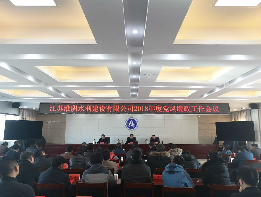 2019年1月20日上午,公司在水利大廈14樓會議室召開了2018年度黨風廉政建設工作會議,公司領導班子成員、職能部室負責人、子、分公司負責人、自營在建項目負責人以及公司助理級以上干部參加了會議,公司紀委書記周杰主持會議。