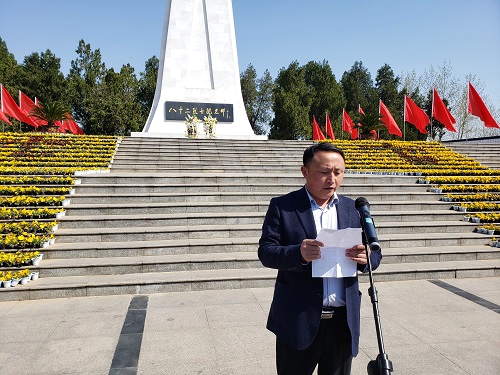 公司黨委書記徐向峰代表公司向英勇的革命烈士們敬獻(xiàn)了花籃,同時(shí)發(fā)表了講話。他說這八十二位烈士是為淮陰人民而戰(zhàn),是為祖國而戰(zhàn),他們是無數(shù)抗日先烈的一部分,我們要深切緬懷所有的為國犧牲的革命先烈!現(xiàn)如今,在以習(xí)近平同志為核心的黨中央的帶領(lǐng)下,在習(xí)近平新時(shí)代中國特色社會(huì)主義思想引領(lǐng)下,中國特色社會(huì)主義進(jìn)入了新時(shí)代,作為新時(shí)代的共產(chǎn)黨員,我們要繼續(xù)傳承先烈遺志,宏揚(yáng)他們不畏艱難、不怕犧牲、英勇頑強(qiáng)的革命精神,服從大局、心中無我的擔(dān)當(dāng)精神。徐書記號召大家要加強(qiáng)自我修煉,全面提高自我,事事有擔(dān)當(dāng)、能擔(dān)當(dāng)、會(huì)擔(dān)當(dāng),盡顯先鋒模范的帶頭作用,帶領(lǐng)一代一代水建人,為淮陰水建更加美好的明天而努力奮斗。